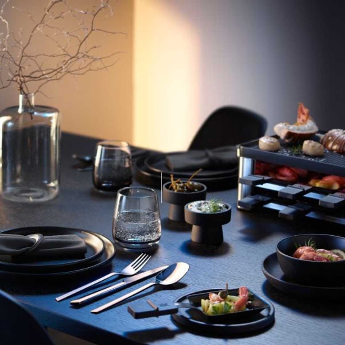 WMF's range is very versatile; pans and frying pans, kitchen knives, cutlery, kitchen utensils and various carafes as well as small electrical appliances such as kettles, grills, blenders, etc.