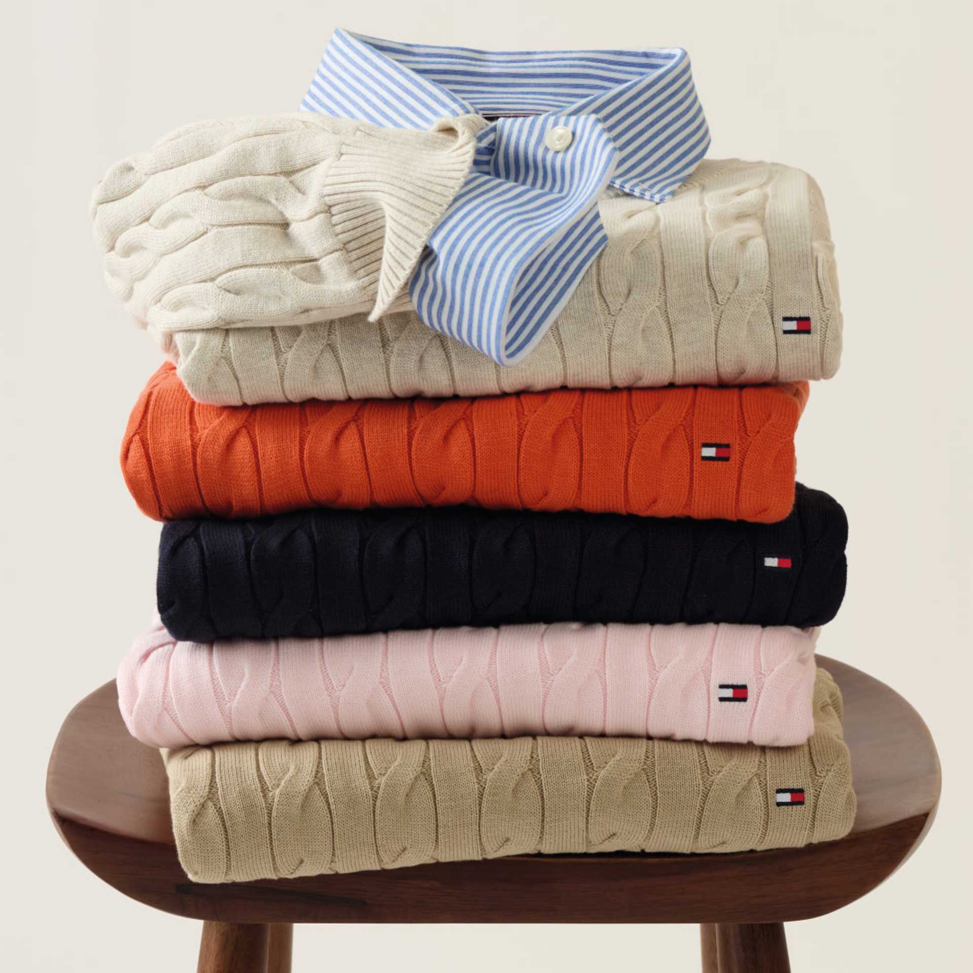 The cable knit returns this season with a clean, textured look that makes it an essential layering piece. Lightweight and versatile, it offers easy warmth and everyday wearability from late winter into early spring.