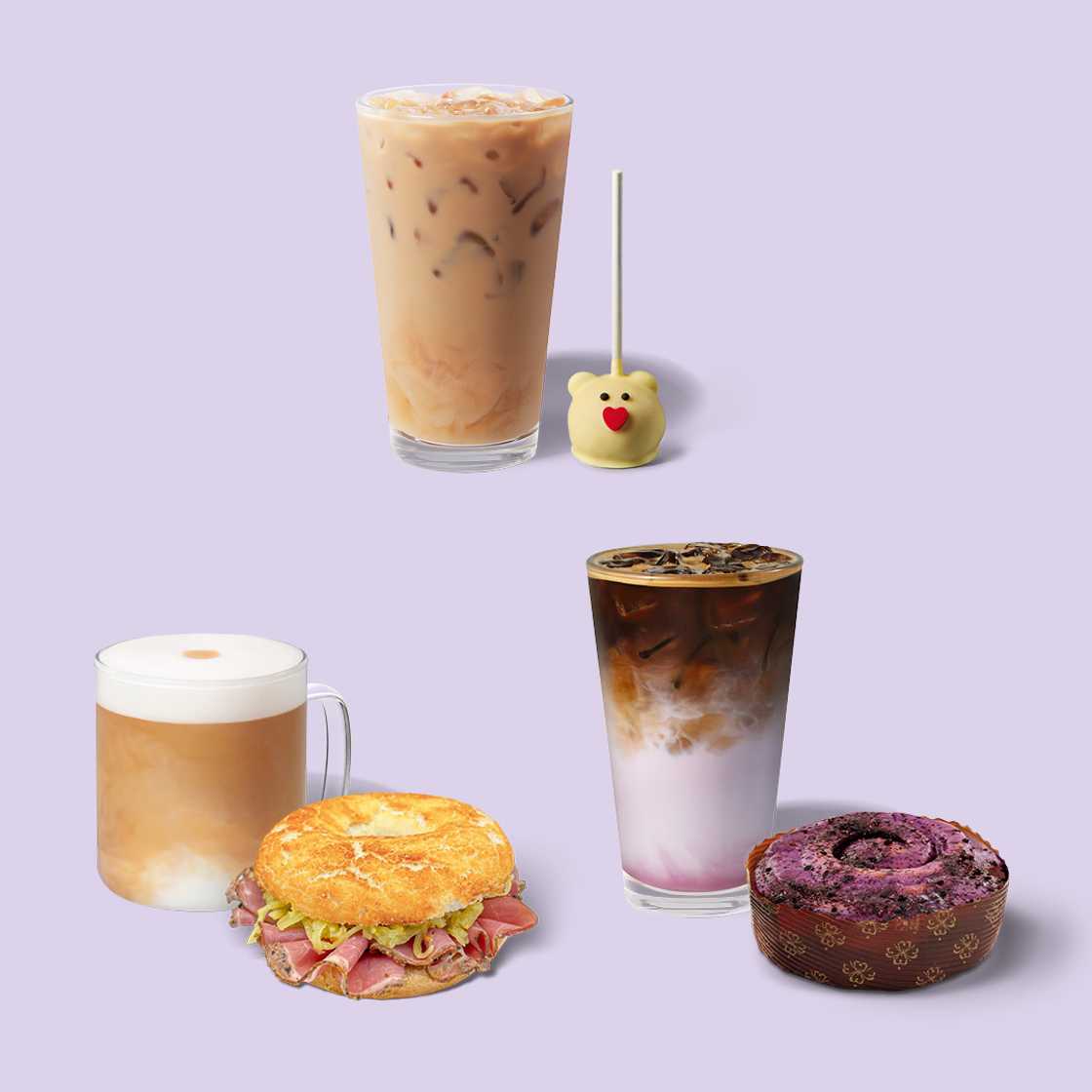 Kies je favoriete combinatie: een Grande Core Drink* – warm of ijskoud – met een Cake Pop of Sandwich. Probeer onze nieuwe topper: de Grande* Iced Ube Vanilla Flavor Macchiato met de zoete en fruitige UBErry Cinnamon Roll.